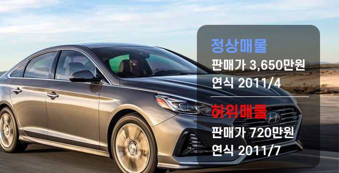 해답은 의외로 간단합니다. 인터넷에서 보신 매물들이 ❛허위매물❜이었던 것입니다.즉, 중고차 매매시장에서 통상적으로 3,650만원에 거래되는 차를 720만원 이라는 터무니없이 싼 가격에 팔겠다고 광고로 올린 매물이었던 것입니다.